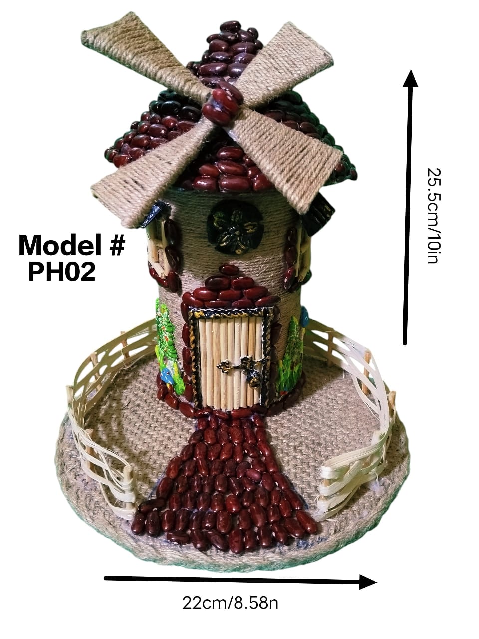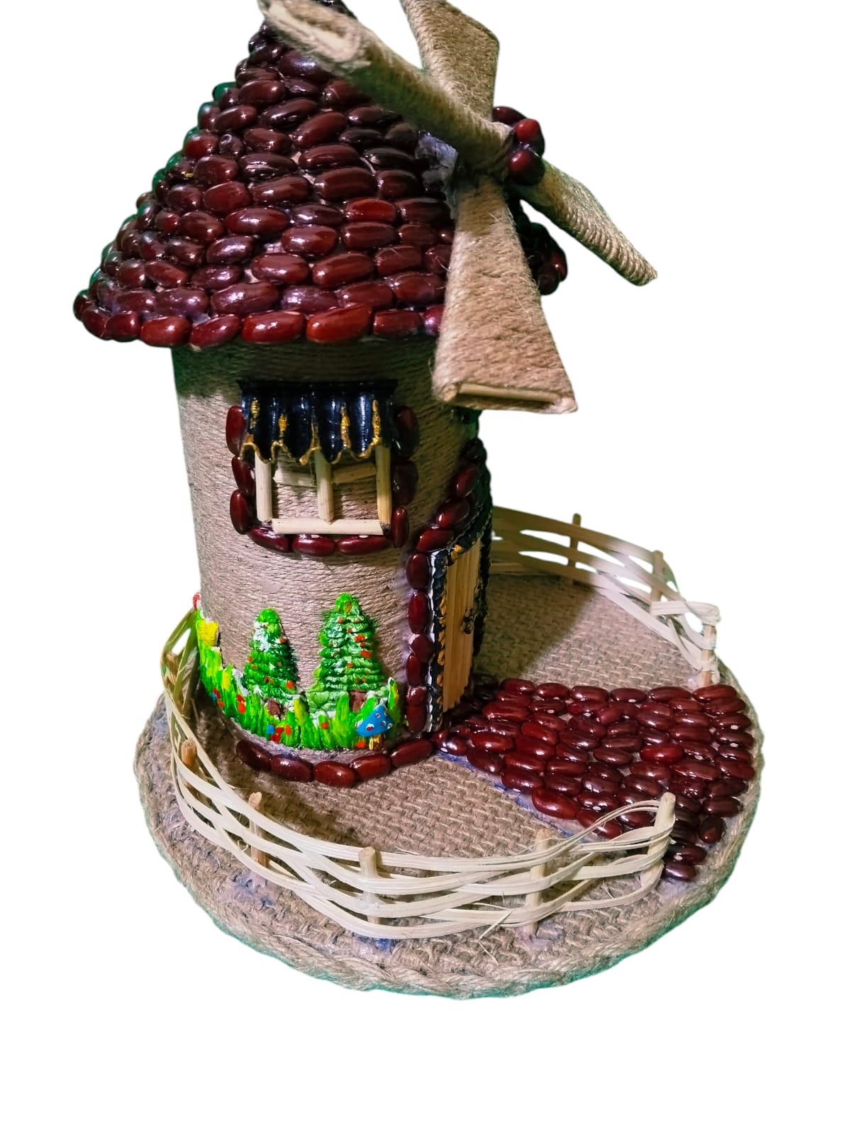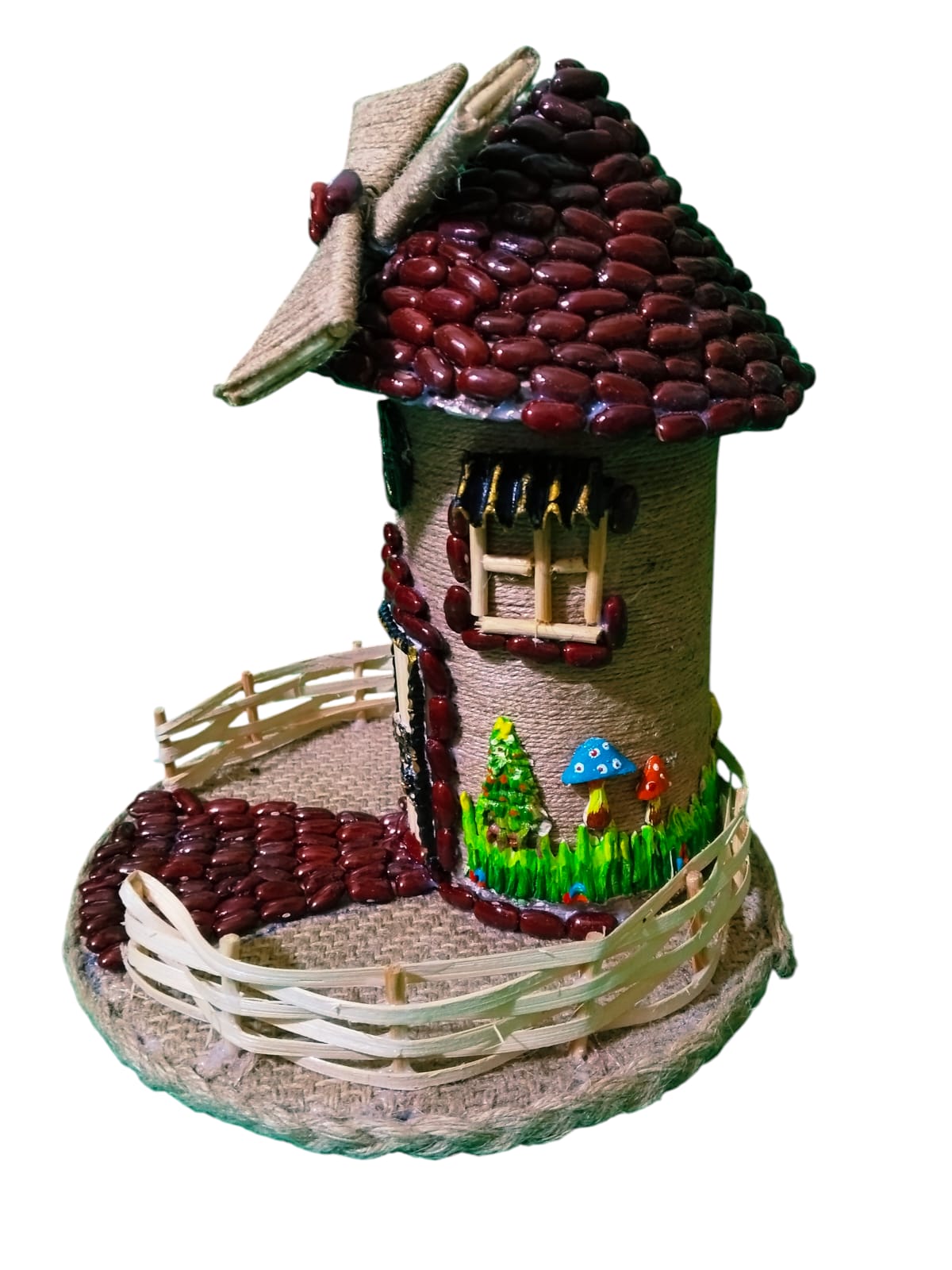 1 PC jute fairy house handmade by jute ; bean and jute bag beautiful decoration pice size leight 25.5cm/10in and width 22cm/8.5in