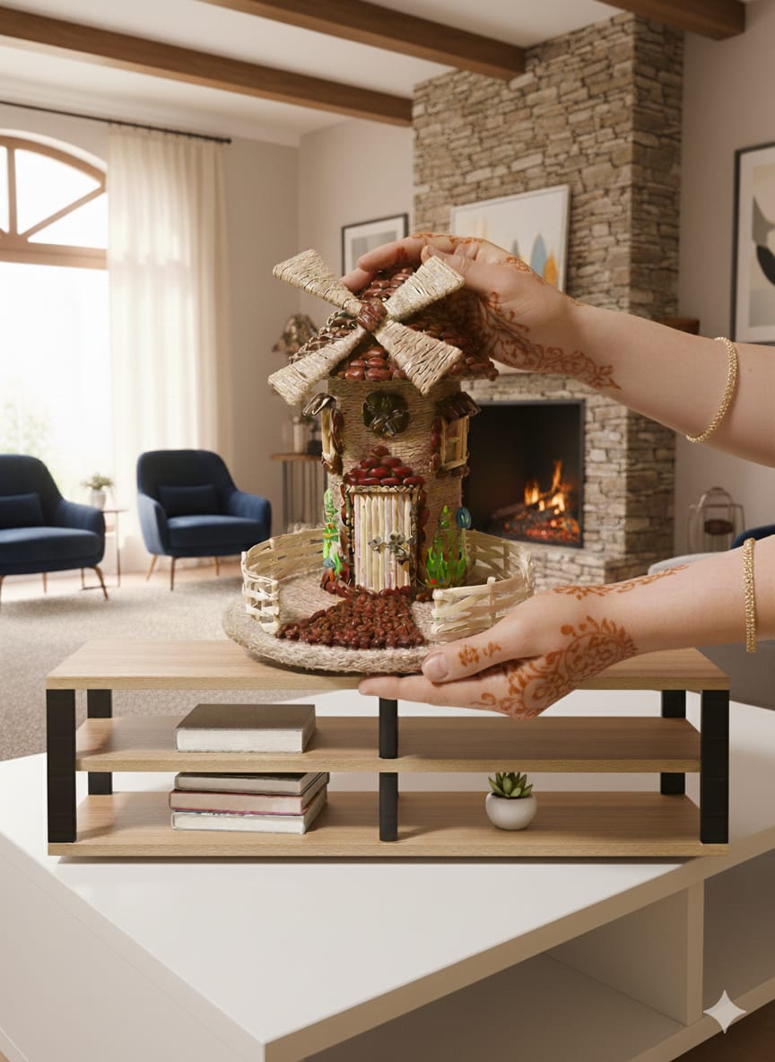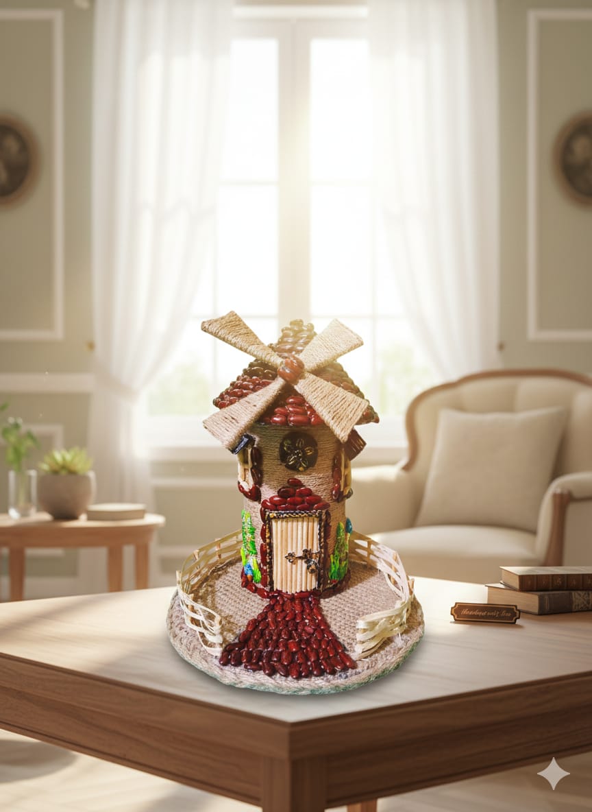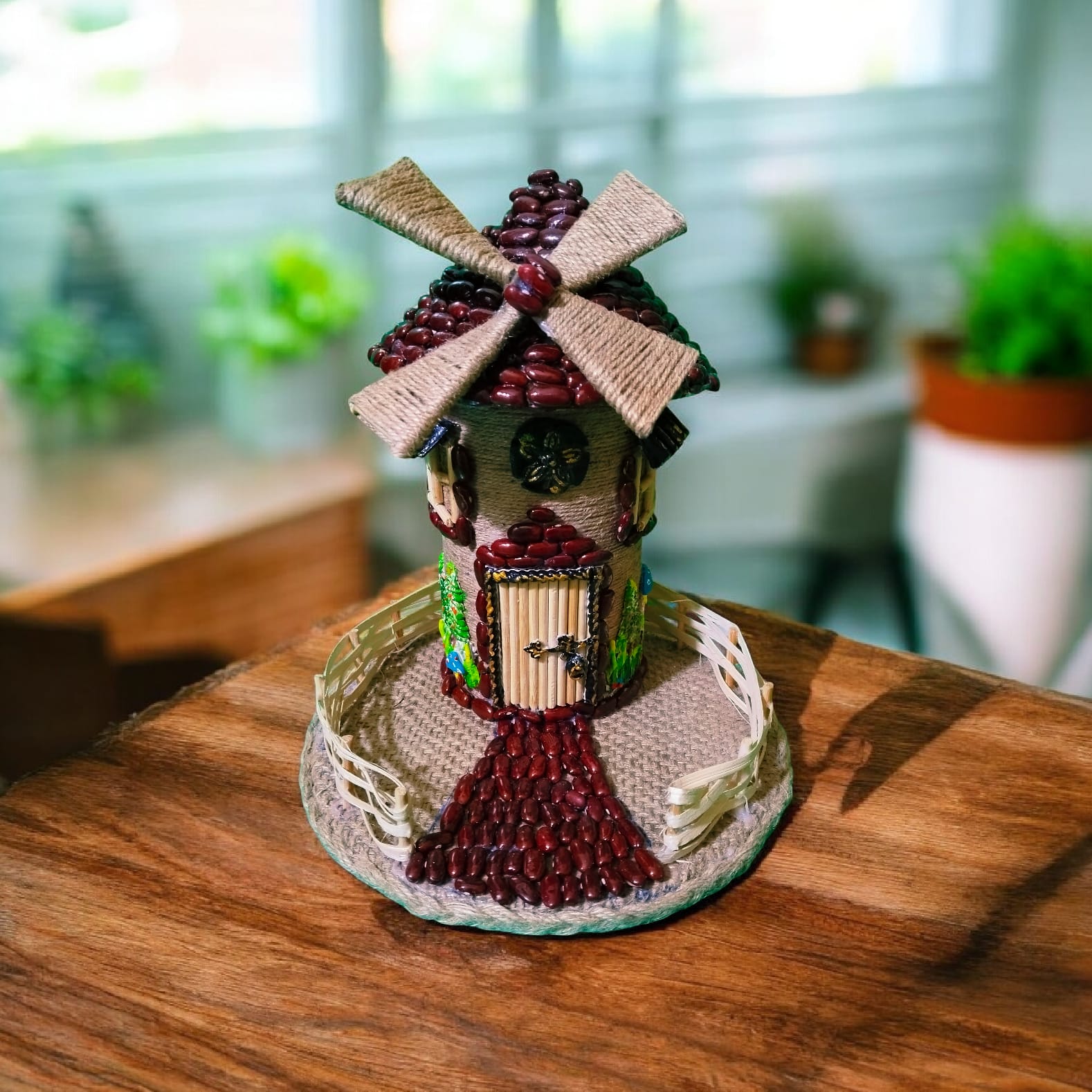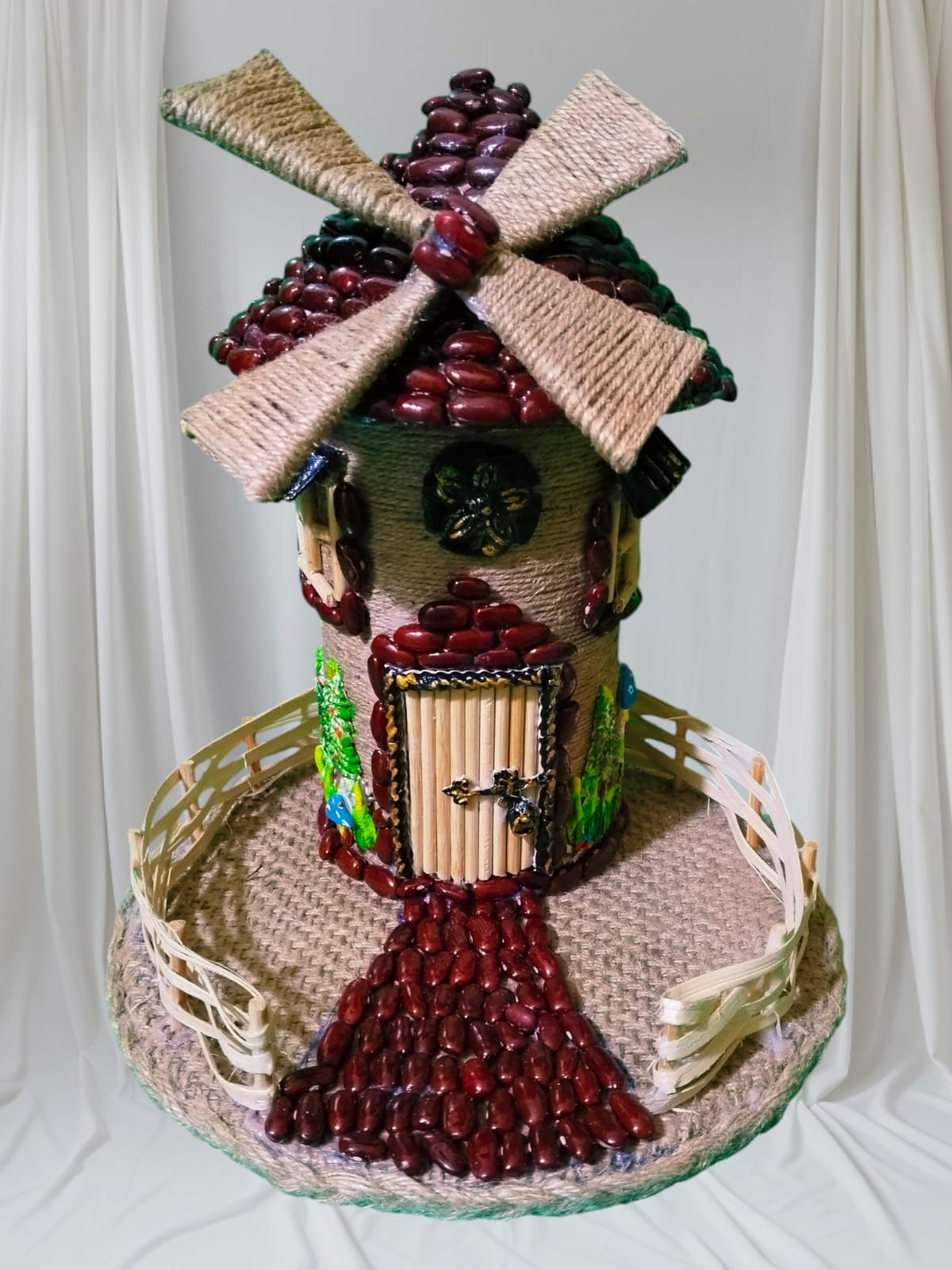 1 PC jute fairy house handmade by jute ; bean and jute bag beautiful decoration pice size leight 25.5cm/10in and width 22cm/8.5in